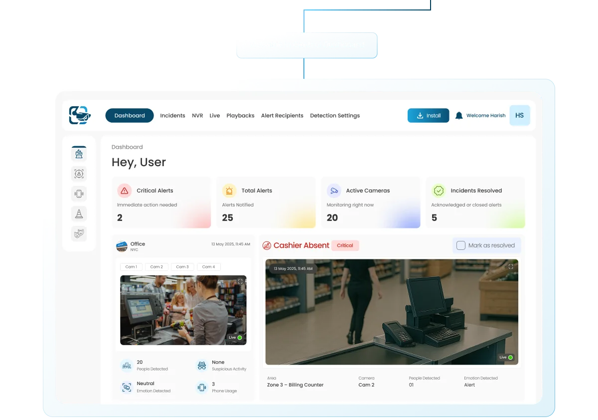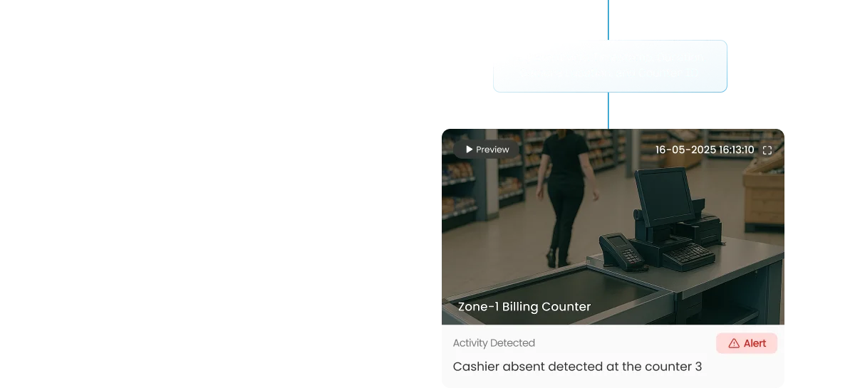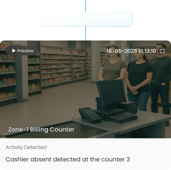 Our AI model is purpose-built for cashier environments, accurately detecting presence or absence, even in busy counters, varied angles, and multi-person scenarios.
