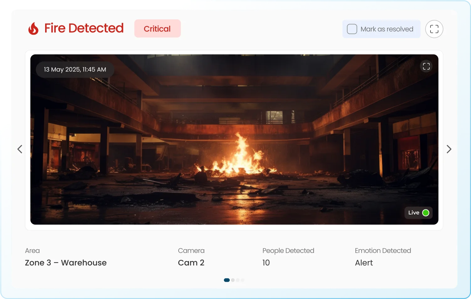 Faster than traditional sensors, alerts are processed in real time through live video.