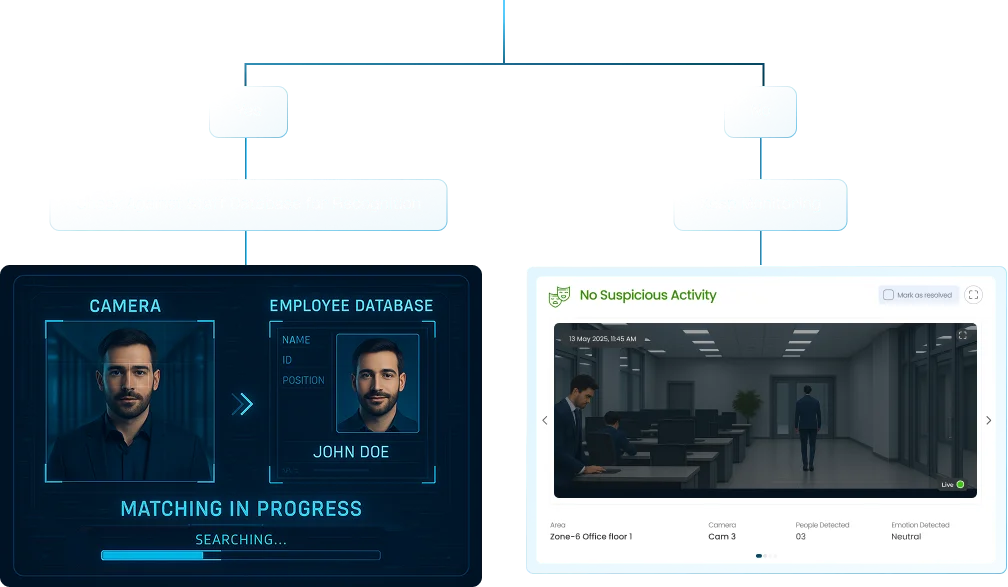 Yes, VideoraIQ uses face recognition and your employee database to automatically identify staff members. It alerts only for unknown individuals, helping reduce false alarms and ensuring accurate threat detection.