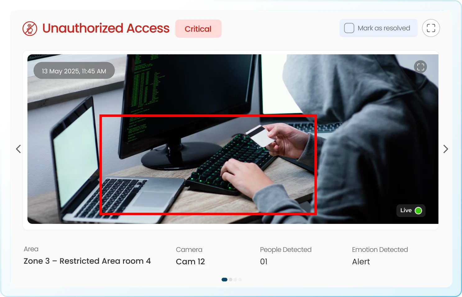 AI-powered surveillance software that instantly detects unauthorized individuals entering restricted areas.